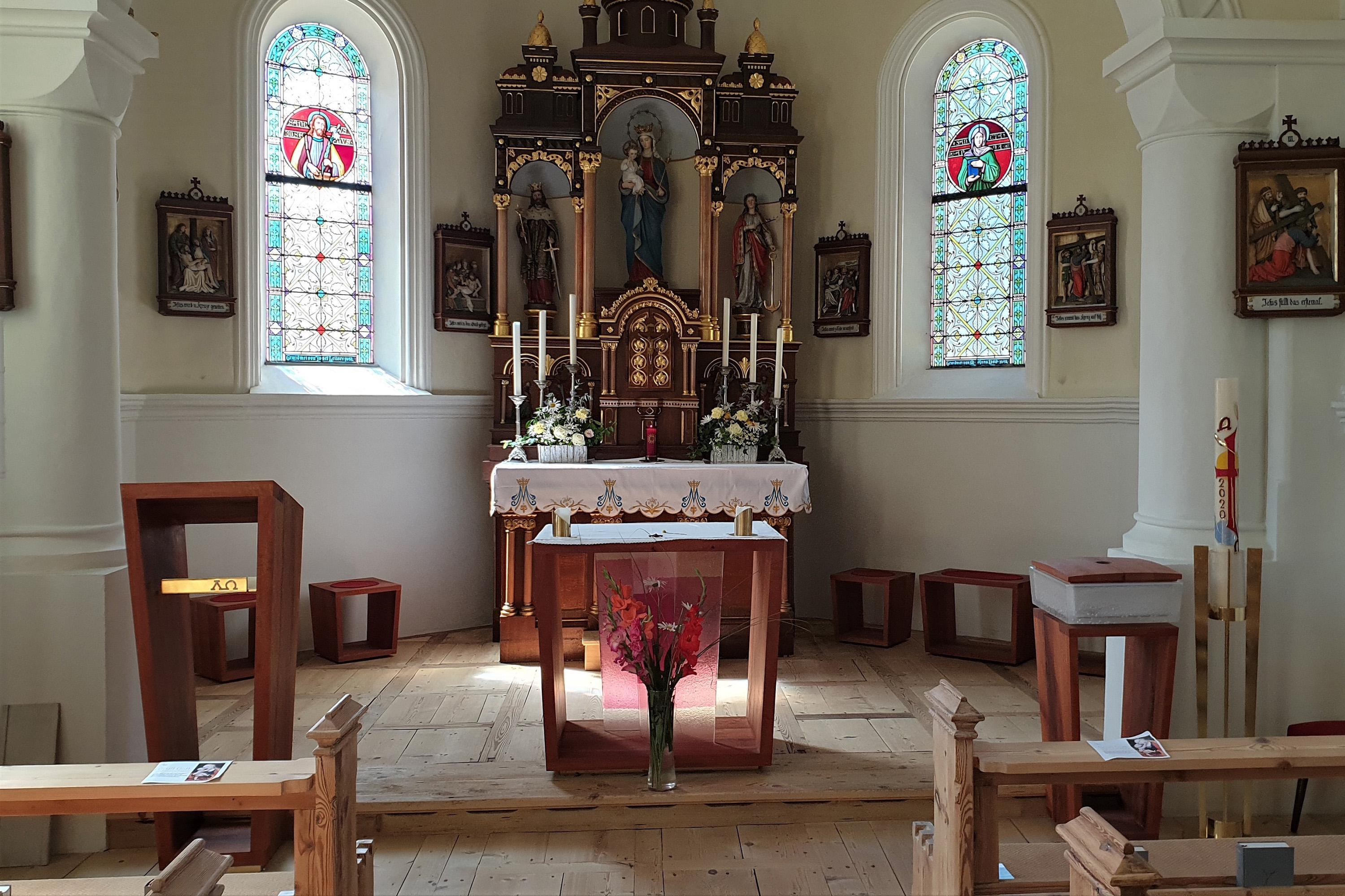 Die Filialkirche Mariahilf im Dorfzentrum von Höfen, ist ein im Kern barocker Bau und wurde im Laufe seiner Geschichte mehrmals vergrößert und verlängert. Die letzte Umfassende Sanierung erfolgte in der 30er Jahren des 20. Jahrhunderts. Nun stand eine umfassende Renovierung an. Dabei sollte u.a. die Gestaltung des Presbyteriums überarbeitet und die Liturgischen Orte neu gestaltet werden.